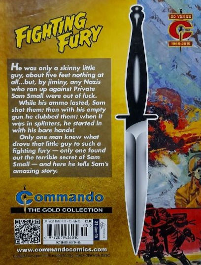 Commando For Action and Adventure, formerly known as Commando War Stories in Pictures, and colloquially known as Commando Comics, is a British comic book magazine that primarily draws its themes and backdrops from the various incidents of the First and Second World Wars. It was first published in July 1961 and is still in print today. It is noted for its distinctive 7 × 5½ inch, 68 page format that became a standard for these kinds of stories. Commando has remained more popular than many other British war comics, because of its character based stories and detailed black and white artwork, with only the covers in colour. It is considered by some to be one of the greatest war comics in history.
